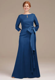 Graceful Mermaid Bateau Neck 3/4 Sleeves Pleated Satin Floor Length Mother of the Bride Dress - US 2 / UK 6 / EU 32