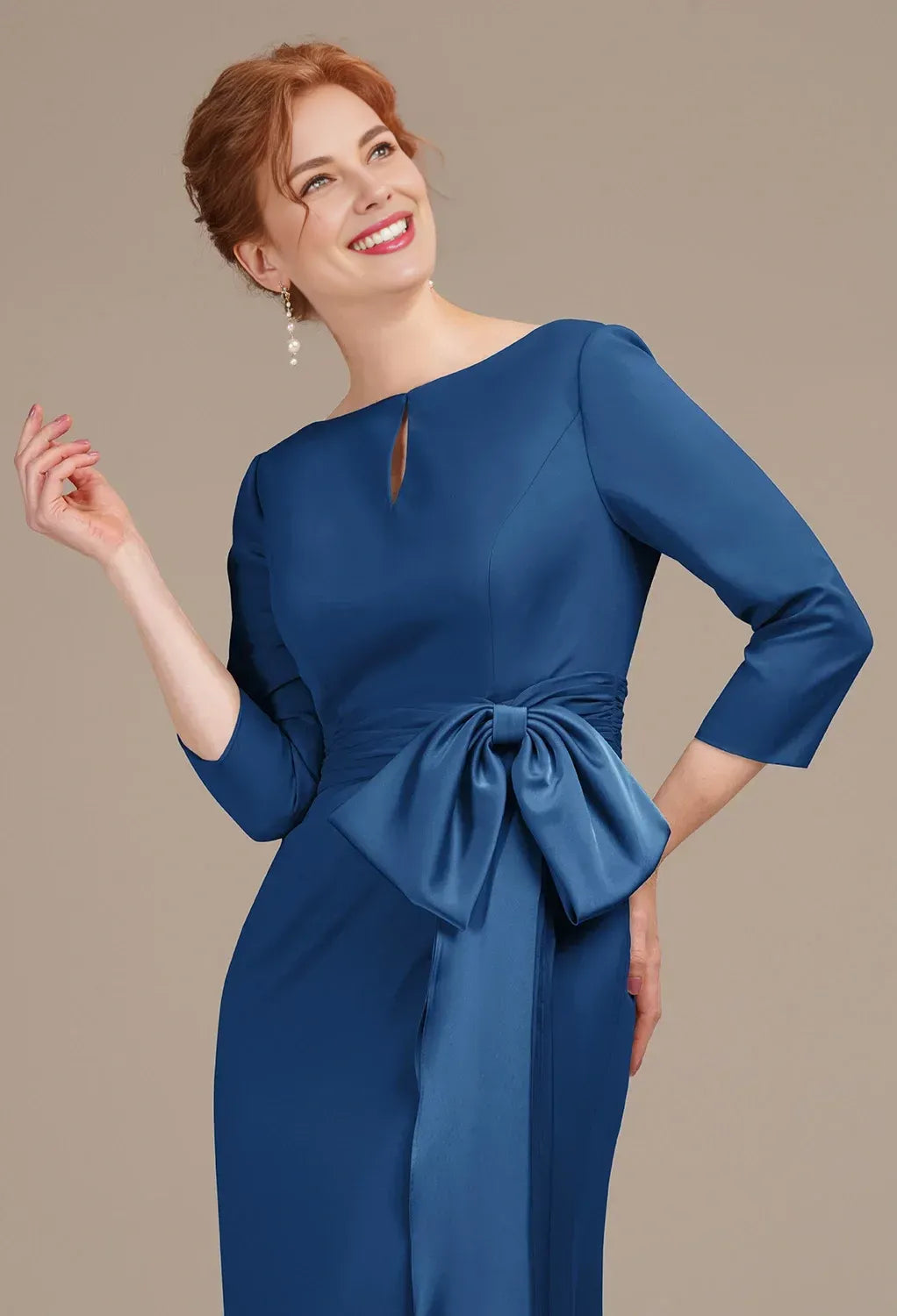 weitese's satin maxi dress features a boat neckline (with subtle keyhole detail), three-quarter sleeves, a ruched waist (adorned with a dramatic bow accent), and a flowing A-line skirt. The lustrous satin fabric and deep navy tone balance classic elegance with refined charm, making it ideal for mother-of-the-bride/groom events, formal evening ceremonies, or upscale holiday gatherings—combines timeless design with polished, sophisticated allure.