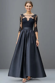 weitese's Elevate your formal look with this black lace and satin maxi dress. It features an intricate lace bodice with sheer 3/4 sleeves for elegant allure, a luxurious satin skirt for opulent charm, and an illusion neckline for refined detail. The open back adds a touch of modern drama, making it perfect for evening galas, weddings, or any occasion where you want to showcase timeless sophistication with a blend of delicate lace and glamorous satin. with a blend of delicate lace and glamorous satin.