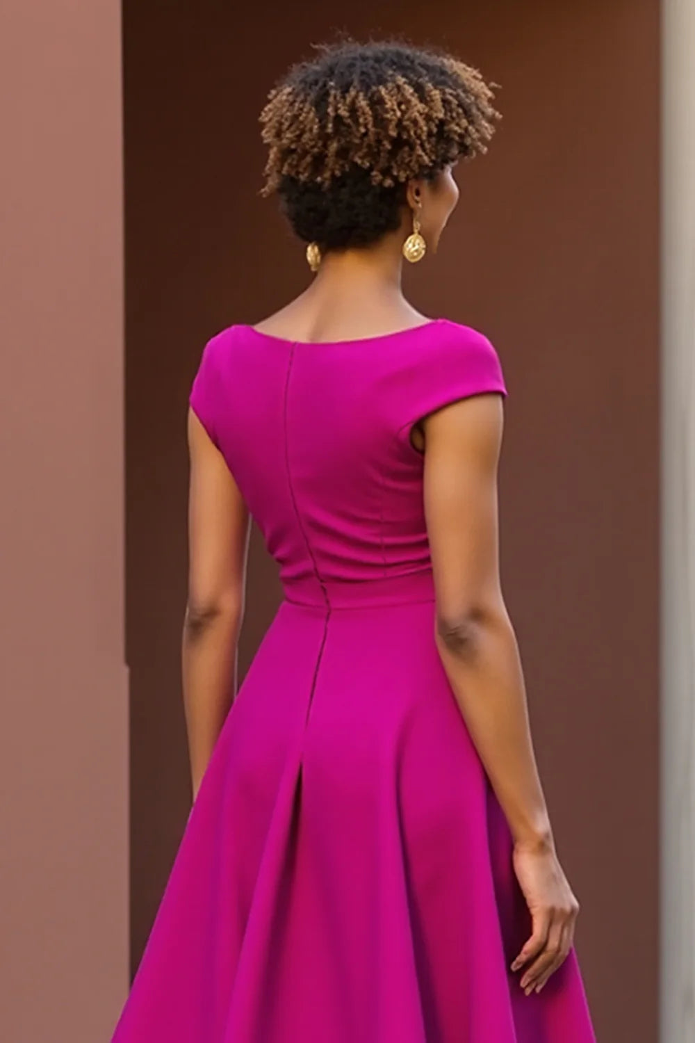 Modern A Line V-Neck Cap Sleeve Zipper Up Tea-Length Mother of the Bride Dress - Dusty Pink / US 2 / UK 6 / EU 32