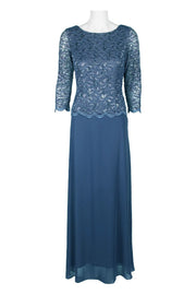 weitese's Elevate your elegant allure with this steel blue lace sequin maxi dress set. It features intricate lace fabric with sequin detailing for glamorous charm, 3/4 sleeves that add refined detail, and a flowing chiffon skirt for graceful movement. The sophisticated steel blue hue and tailored design make it perfect for formal events, weddings, or any occasion where you want to embrace polished, show-stopping style.