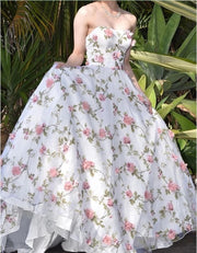 Off-the-Shoulder A-Line 3D Floral Lace Strapless Prom Dress