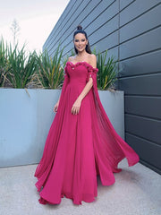 A-Line/Princess Chiffon Floor-Length Long Sleeves Ruffles Off-the-Shoulder Dresses