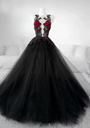 Deep V Beautiful Tulle With Lace Applique Long Formal Gown