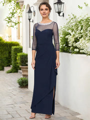 Elegant Fitted Illusion Neck Long Sleeve Zipper Up Floor-Length Mother of the Bride Dress