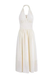 Halter V Neck Homecoming Dress Ivory Dress Midi Dress Bridesmaid Dresses Backless Tea-Length Party Dress