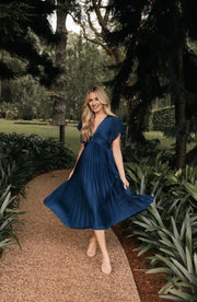 weitese's Elevate your vintage-inspired allure with this blush pink satin pleated midi dress. It features luxurious satin fabric with a twist-front V-neckline and delicate flutter sleeves for opulent charm, a flowing pleated midi skirt that creates elegant movement for refined elegance, and a polished finish that exudes timeless sophistication. The soft blush pink hue ensures a captivating presence, making it perfect for formal events, cocktail parties, or any occasion where you want to embrace retro glamour with show-stopping style.