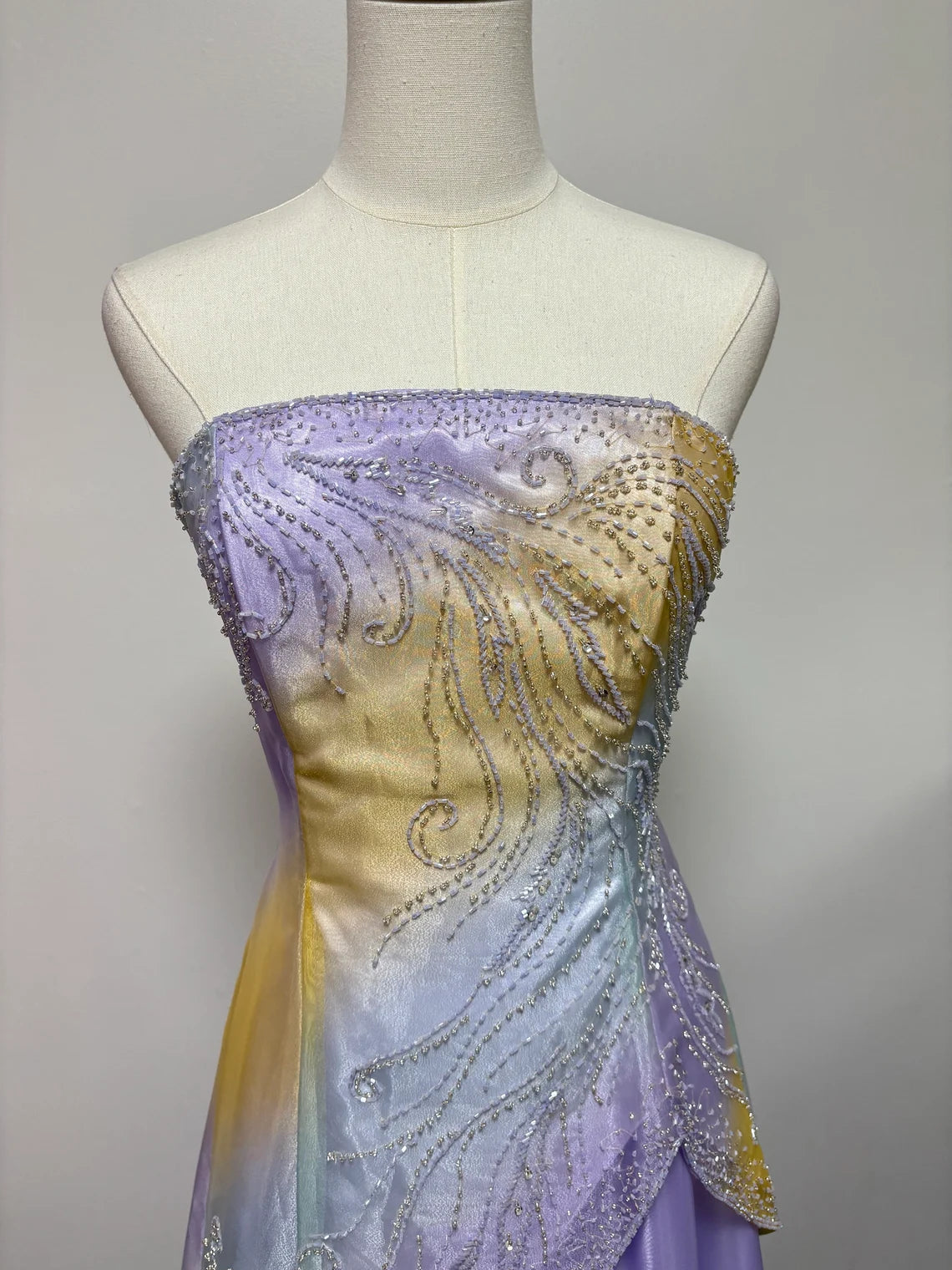 Off-the-Shoulder Beaded Irregular Sleeveless Floor Length Prom Dress - US 2 / UK 6 / EU 32