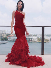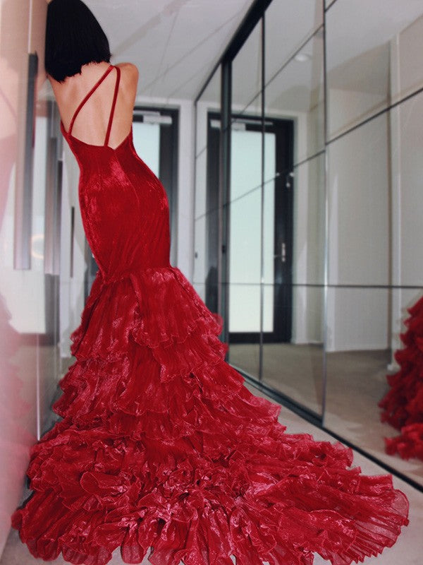Trumpet/Mermaid Organza Layers One-Shoulder Court Train Sleeveless Dresses