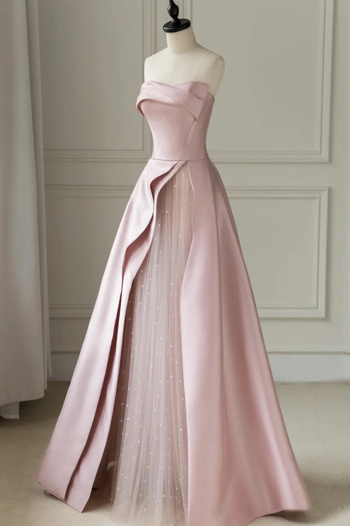 Pink Strapless Satin Floor Length Prom Dress - US 2 / UK 6 / EU 32