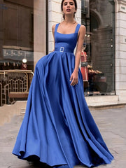 Satin Ruffles Straps Sleeveless Sweep/Brush Train Dresses