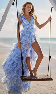 Sleeveless A-line Ruched Prom Dress Open Back Sweetheart V Neck Ruched Tiered Prom Dress / Prom Dress In Store