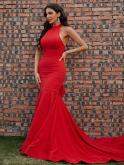 Trumpet/Mermaid Ruffles Halter Sleeveless Sweep/Brush Train Dresses