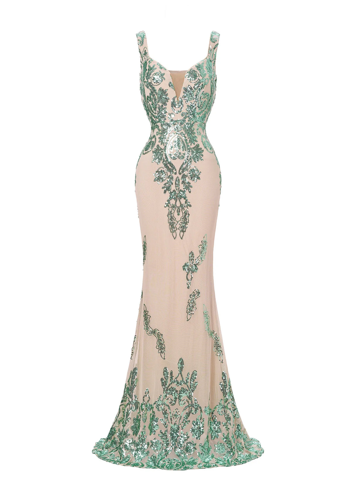 weitese's Elevate your elegant look with this mint green and nude sequin mermaid maxi dress. It features intricate sequin detailing in a floral-inspired pattern for opulent allure, a plunging V-neckline with a one-shoulder strap for refined charm, and a figure-hugging mermaid silhouette for sophisticated flair. The combination of mint green and nude hues ensures a standout finish, making it perfect for formal events, weddings, or any occasion where you want to blend timeless elegance with delicate, textural design.