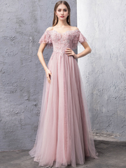Tulle Lace Off Shoulder Floor Length Prom Dress