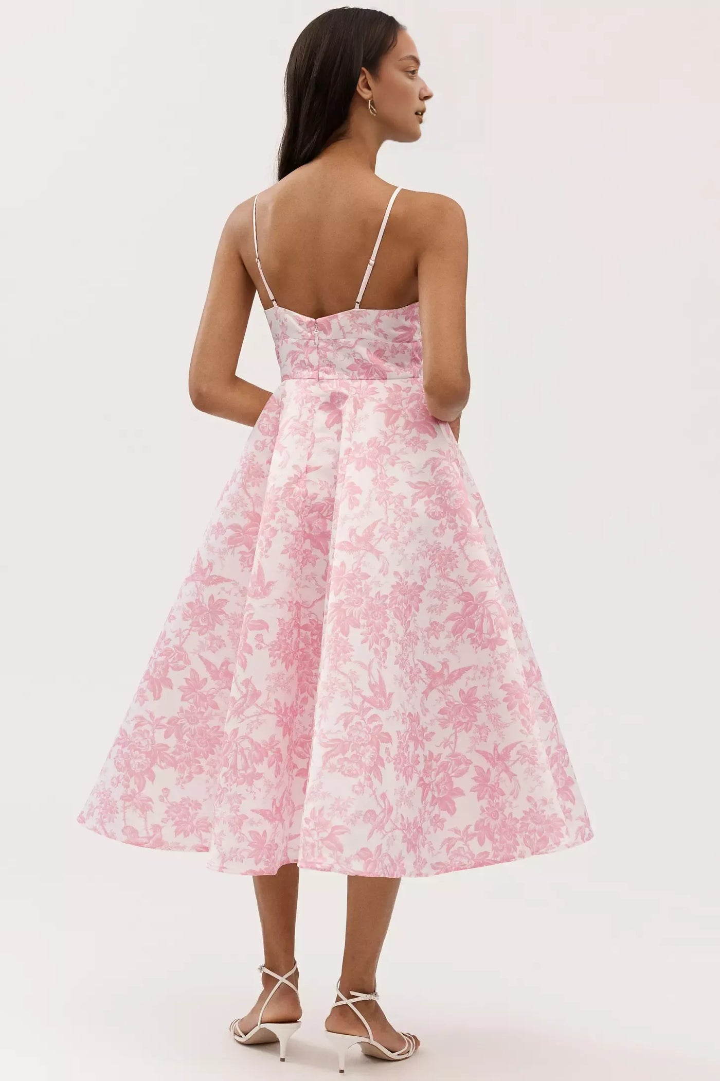 Weitese Dress A-Line Satin Midi Dress Spaghetti Straps Pink Floral Maxi Dress Prom Dress