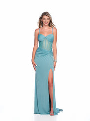 Weitese Dress Aqua Spaghetti Straps Sweetheart Mermaid Maxi Dress Pleated Prom Dress With Side Slit - US 2 / UK 6 / EU 32