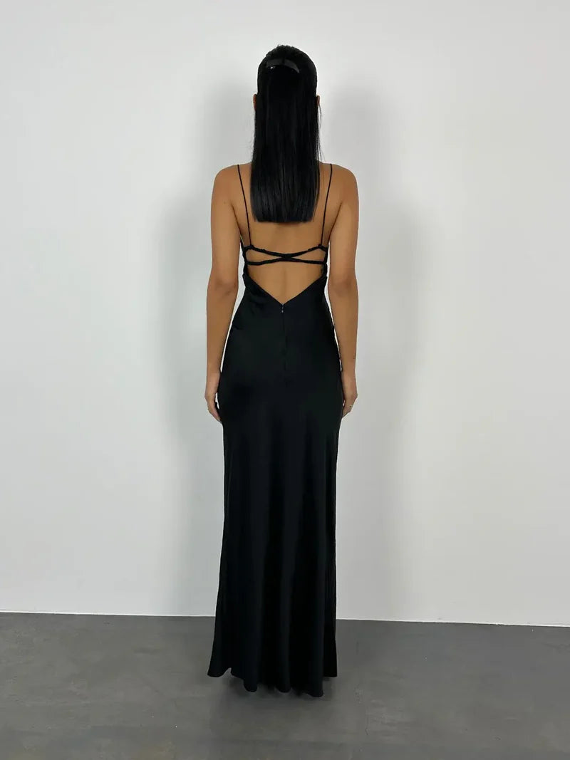 This black, sleeveless prom dress from Weitese features spaghetti straps and pleats for a graceful, floor-length look. Perfect for a formal evening event, this dress exudes elegance and sophistication. The lightweight fabric ensures comfort, while the timeless design makes it a versatile choice for any occasion.