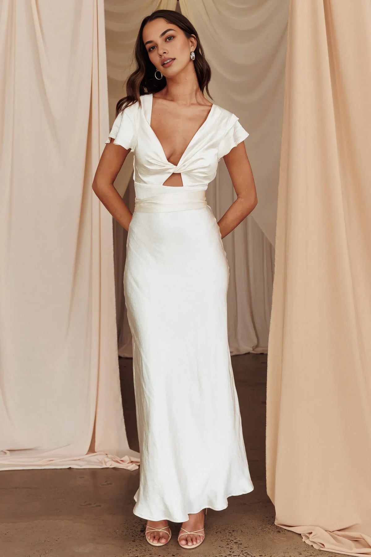 Weitese Dress Deep V Neck Twist Bust Short Sleeve Dress Sage Back Bow Prom Dress - Sage / US 2 / UK 6 / EU 32