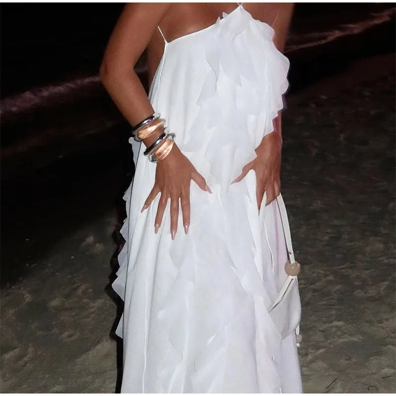 Weitese Dress Elegant White Ruffles Edge Backless Long Dresses Women Sexy Off Shoulder Loose Maxi Dress Fashion Beach Vacation Party Prom Dress
