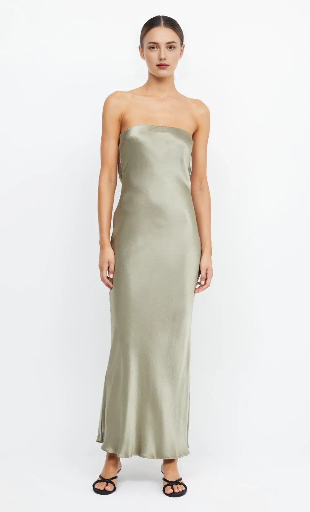Weitese Dress Simple Sage Strapless Sleeveless Ankle Length Solid Color Prom Dress