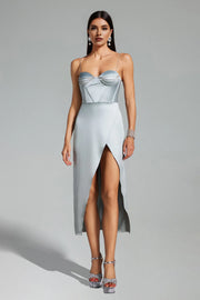 Weitese Dress Sleeveless Strapless Satin Dress Spaghetti Straps Tea-Length Prom Dress With Hight Slit