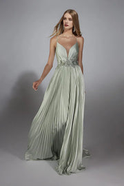 Weitese Dress Spaghetti Straps A-Line Party Dress Waist Appliques Evening Dress Sweep/Brush Train Sleeveless Pleats Prom Dress