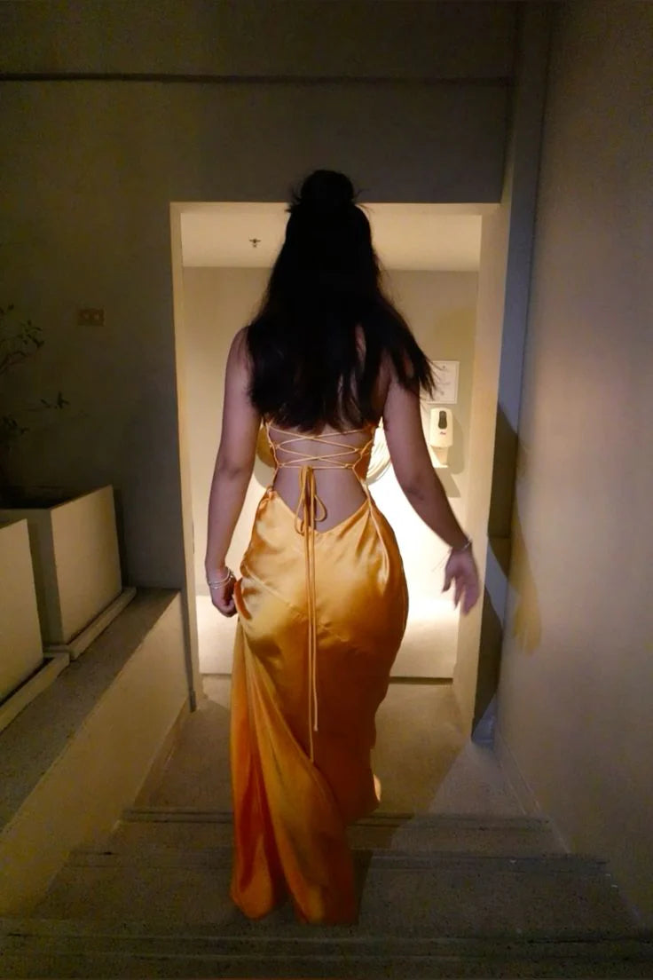 This elegant Weitese dress features spaghetti straps and a side slit, perfect for a formal occasion. The form-fitting design emphasizes your curves, while the slit adds a touch of allure. Look and feel confident in this sexy yet sophisticated dress.