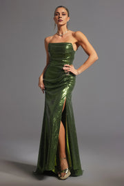 Weitese Dress Sweetheart Strapless Sleeveless Lacing Sheath Mermaid Sequin Maxi Prom Dress
