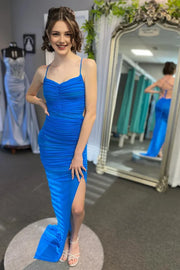 Weitese Dress Uniqure Sheath Sweetheart Ruched Maxi Dress with Slit - Royal Blue / US 2 / UK 6 / EU 32
