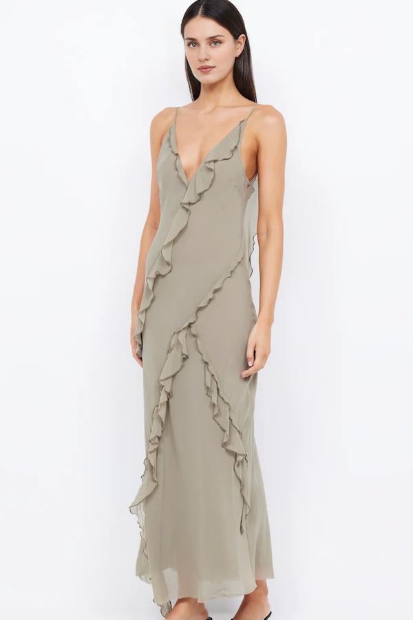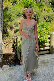 Designed for a woman with style, the Weitese Dress features a flattering v-neckline, ruffled edge detailing, and a classic open back design. The solid color dress is perfect for prom or any special occasion, making you the center of attention with its elegant spaghetti straps.