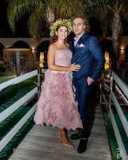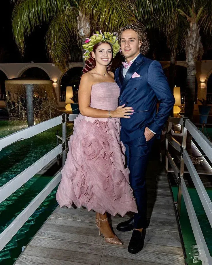 Weitese Formal Women's Dresses Misty Pink Flowered Tulle Prom Dress Strapless Midi Dress Cocktail Party Dress Prom Clothing