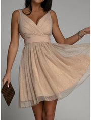 Women's Party Dress Homecoming Dress Cocktail Dress Mini Dress Pink Red Beige Sleeveless Pure Color Ruched Fall Winter Autumn Spaghetti Strap Fashion Wedding Guest Vacation Slim - Beige / US 2 / UK 6 / EU 32