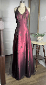Vintag A-Line Halter Neck Sleeveless Lace Up Floor-Length Prom Dress/No gloves