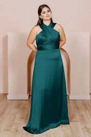 weitese's Elevate your sophisticated and elegant style with this emerald green crisscross halter neck satin maxi dress. It features luxurious satin fabric with a crisscross halter neckline for chic asymmetry, a tied back detail for a customizable fit, and a flowing silhouette that exudes grace. The rich hue makes it perfect for formal events, weddings, or any occasion where you want to embrace timeless, refined glamour.