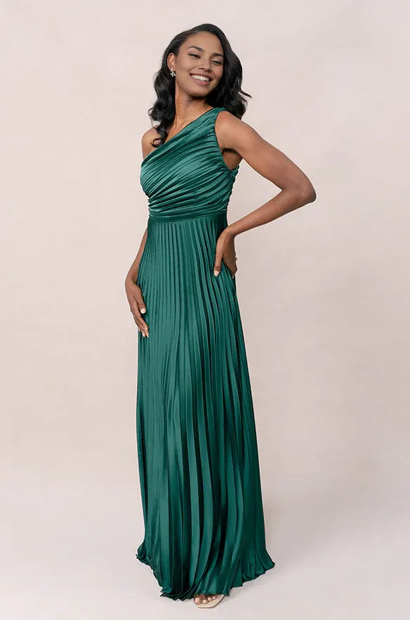 weitese's Elevate your sophisticated and elegant style with this emerald green one-shoulder pleated satin maxi dress. It features luxurious satin fabric with intricate pleats for a textured, flowing silhouette, a one-shoulder neckline for chic asymmetry, and a floor-length design that exudes grace. The rich hue makes it perfect for formal events, weddings, or any occasion where you want to embrace timeless, refined glamour.