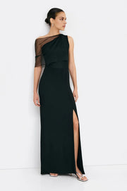 Black Mesh Dress Sleeveless Floor Length Gown Fitted Formal Dress One Shoulder Dress Mesh Cocktail Gown Prom Dress With Slit - US 2 / UK 6 / EU 32
