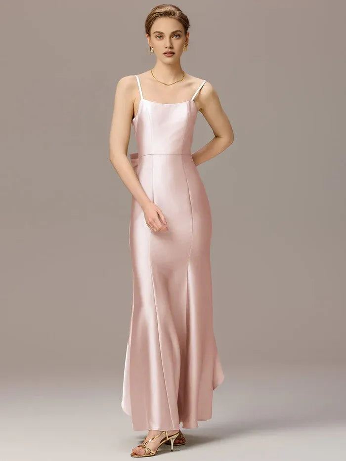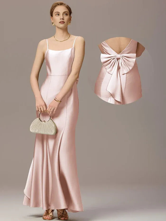 weitese's elegant mermaid/trumpet silhouette prom dress features delicate spaghetti straps and a sleeveless, backless design, creating a striking and refined look. The floor-length hem enhances its graceful flow, perfect for formal occasions. Expertly tailored to highlight your figure, this dress offers both style and sophistication suitable for memorable events.