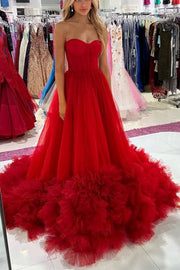 Deep V Neck Charming A Line Sweetheart Corset Prom Dress with Ruffles