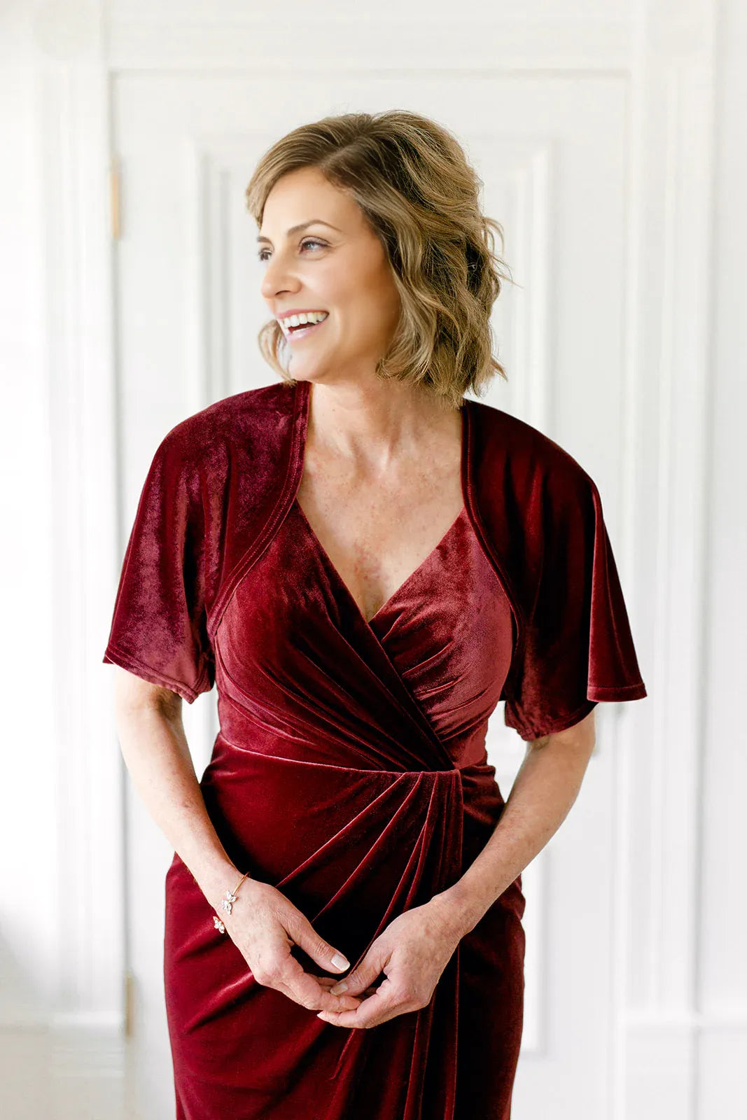 weitese's Elevate your luxurious and elegant style with this burgundy velvet wrap V-neck maxi dress, paired with a matching shrug. It features plush velvet fabric with a draped wrap design for sophisticated charm, a V-neckline for refined allure, and a floor-length silhouette that exudes grace. The matching shrug adds a layer of versatility, making it perfect for formal events, winter galas, or any occasion where you want to embrace timeless, refined glamour.