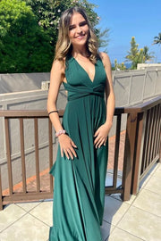 Formal Wear Dresses/Plunging Neck Green Long Evening Dress with Criss Cross Back Prom Dress/Prom Dresses Stores