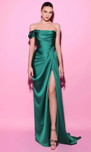 Formal Women's Dresses Handmade Semi-Sweetheart Ruched Bodice Evening Gown Off Shoulder With Slit Prom Dress Formal Dresses Prom Dresses Stores - Emerald / US 2 / UK 6 / EU 32