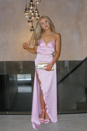 Formal Women's Dresses Spaghetti Straps Pink Long Party Dress With Hight Slit Floor Length Prom Dress Prom Dress In Store