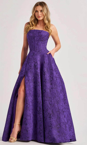 Prom Dresses Shops Off Shoulder Beaded Prom Gown Sleeveless With Slit Formal Dress Floor Length Prom Clothing Formal Women's Dresses - Purple / US 2 / UK 6 / EU 32