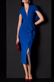 Prom Dresses Stores Midi-Length Cocktail Dress with V-Neckline and Peplum Detail Ruffle Prom Dress Formal Women's Dresses