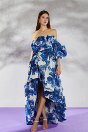 Prom Dresses Stores Printed Puffed Sleeves Off-Shoulder Neckline Hight-Low Hem Prom Dress Formal Women's Dresses