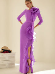 Prom Dresses Stores Sheath/Column Jewel Neck 3/4 Length Sleeves Floor-Length Long Mother of the Bride dresses with Ruffles Formal Women's Dresses