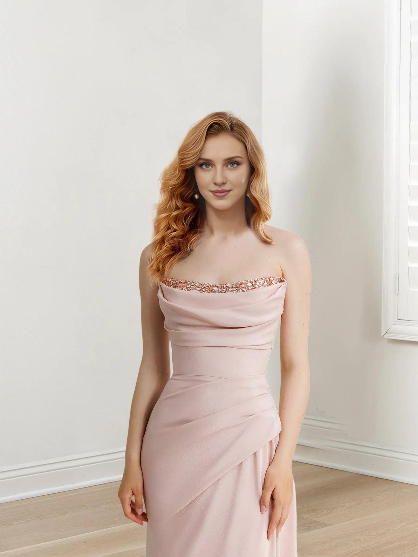 Prom Dresses Stores Sheath/Column Strapless Sleeveless Floor-Length Long Evening Dresses with Beaded Prom Dress Formal Women's Dresses