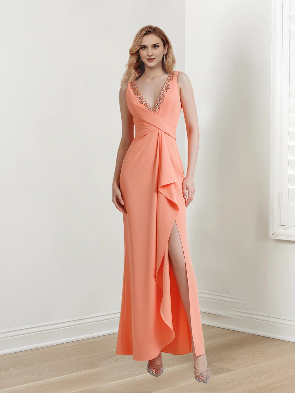 Prom Dresses Stores Sheath/Column V-Neck Sleeveless Floor-Length Long Evening Dresses with Split Side Prom Dress Formal Women's Dresses