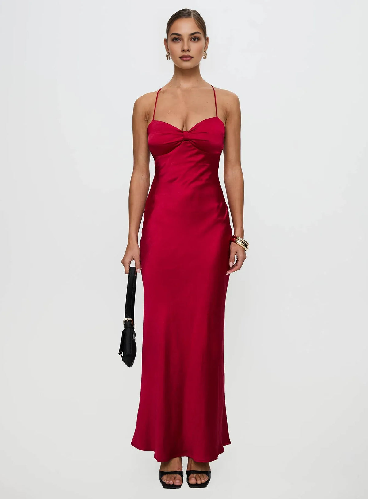weitese's Embrace elegance with this red satin maxi dress. It has delicate spaghetti straps and a sweetheart neckline that enhance femininity. The backless lace - up detail adds a bold and alluring touch. The smooth satin fabric drapes beautifully, creating a graceful silhouette. Perfect for special occasions like parties or formal events, this dress will make you stand out.